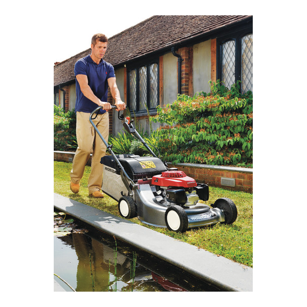 La tondeuse HRD 536KHXE version Hydrostatique de 53 cm de coupe avec Rotostop® est recommandée pour une pelouse jusqu’à 2200m2.